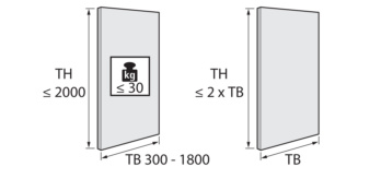 Bitte auf die Verhältnismäßigkeit der Türmaße achten. Die Türhöhe sollte maximal der doppelten Türbreite entsprechen.